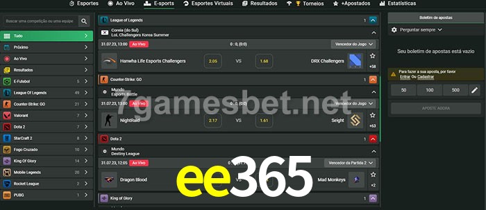 A aposta ee365 oferece aos jogadores a experiência mais conveniente de apostas em eSports!